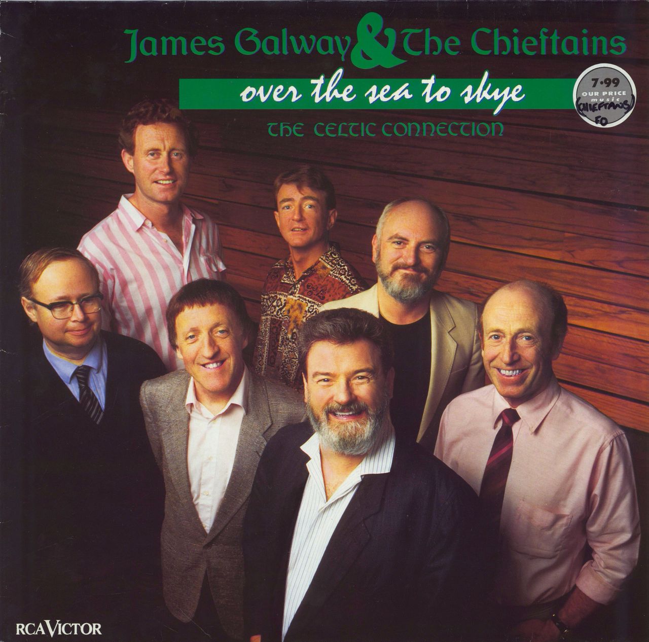 JAMES GALWAY & THE CHIEFTAINS Over The Sea To Skye (1990 German 16-track vinyl LP featuring a Celtic Connection between Scotland & Ireland. The glossy picture sleeve retains a vintage price point sticker and shows a little shelfwear to the edges while the vinyl looks barely played RL60424)