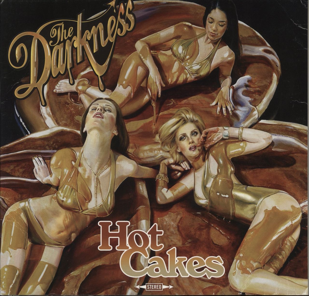 THE DARKNESS Hot Cakes (2012 UK limited edition 10-track LP pressed on Heavy Weight Cream Vinyl, the third album from the Britsh rock group produced by Nick Brine and band members Justin and Dan Hawkins, including the singles Nothing's Gonna Stop Us, Every Inch of You and Everybody Have a Good Time along with their great version of the classic Radiohead song Street Spirit [Fade Out]. Housed in a gatefold picture sleeve with a band name logo on the front and fold-out poster/ lyric insert. The sleeve displays minimal wear and vinyl remains in a 'near mint' condition)