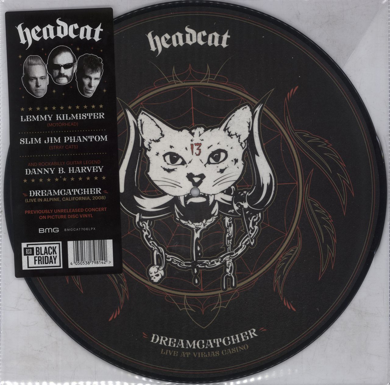 THE HEAD CAT Dreamcatcher: Live At Viejas Casino (2022 UK/EU Record Store Day Black Friday exclusive limited edition 17-track PICTURE DISC LP featuring Lemmy [Motorhead], Slim Jim Phantom [The Stray Cats] & Danny B. Harvey [Rockats, 13Cats and Lonesome Spurs] - recorded live at the Viejas Casino in Alpine, California on 1st February 2008. Housed in a picture stickered clear PVC envelope style sleeve BMGCAT706LPX)