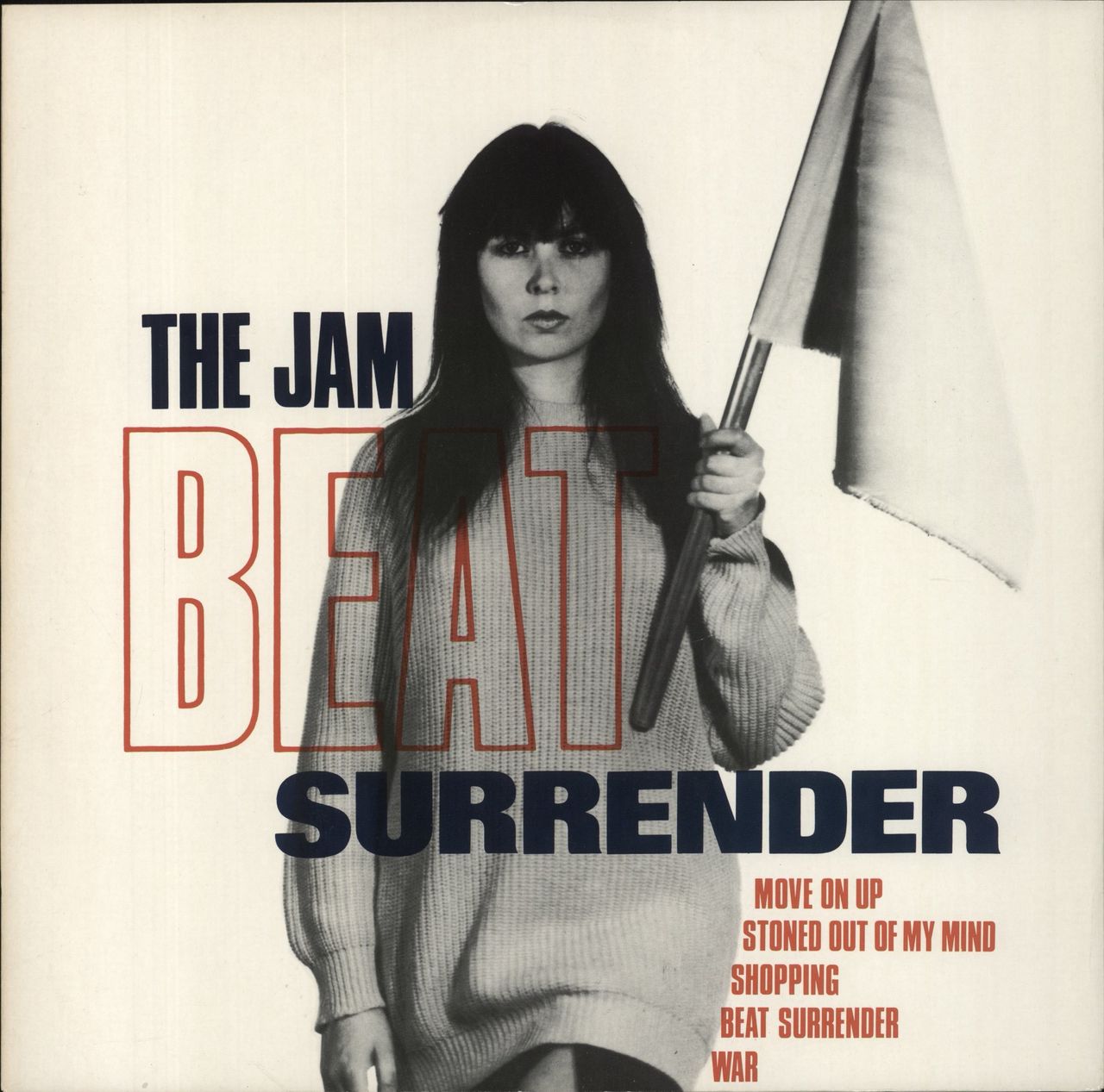 THE JAM Beat Surrender (1982 UK 5-track 12" EP, their final release which also includes Shopping, Move On Up, Stoned Out Of My Mind & War, picture sleeve. The sleeve shows a little ringwear and light foxing/discolouration whilst the vinyl remains in excellent condition POSPX540)