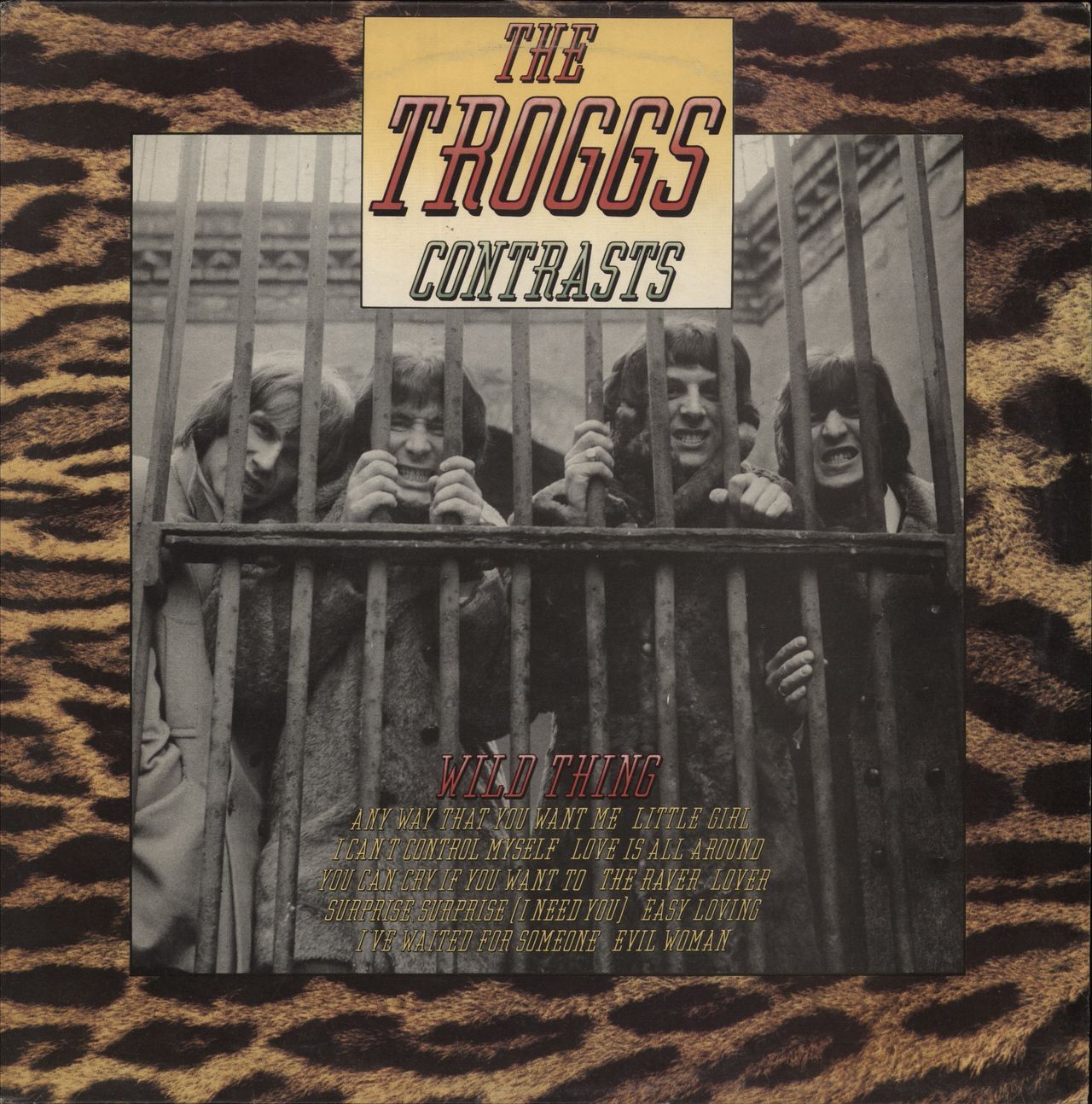 THE TROGGS Contrasts (1970 UK 12-track mono LP compilation on the black DJM/Silverline label, including the classic singles Wild Thing & Love Is All Around, unique picture sleeve with leopard print border. The sleeve shows some light edge scuffing and storage wear, whilst the vinyl looks barely played DJML009)