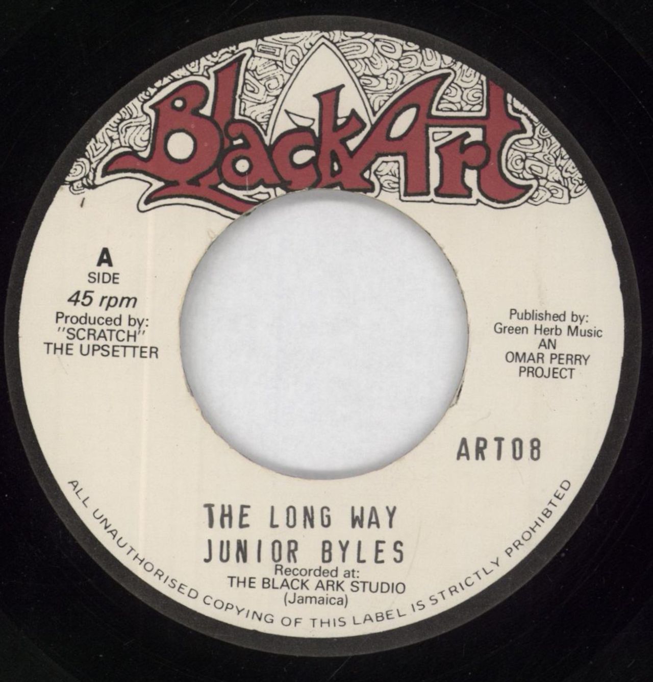 JUNIOR BYLES & THE UPSETTERS The Long Way (1998 UK issue of the 1975 split 7" vinyl single with wide-centre. Housed in a plain die-cut sleeve. The vinyl remains in Excellent condition)