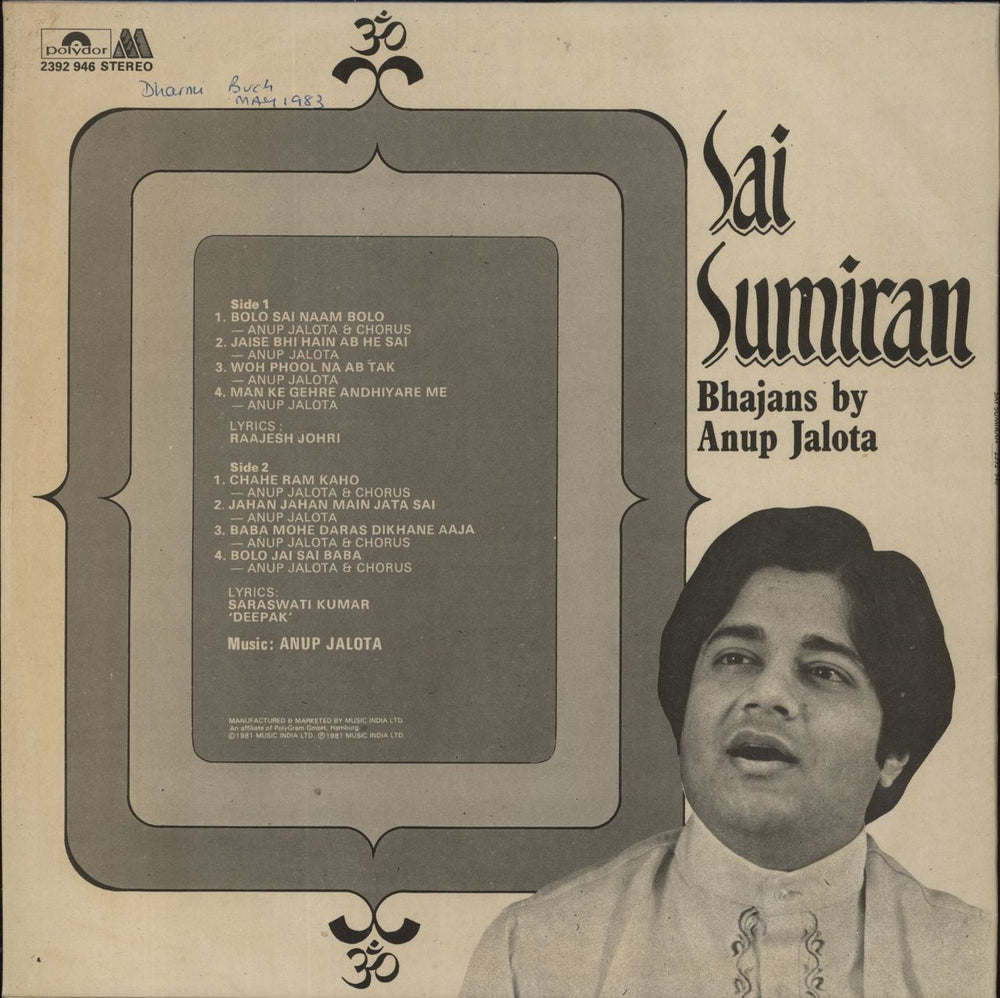Anup Jalota Sai Sumiran Indian Vinyl LP