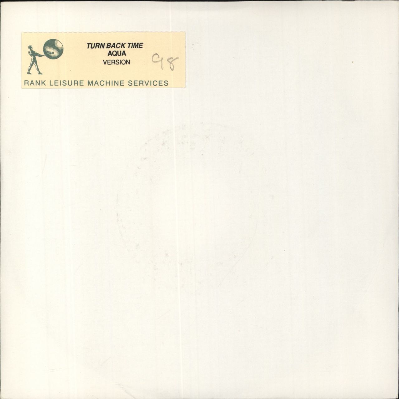 AQUA Turn Back Time (1998 UK wide centre vinyl 7" for the single release, pressed exclusively for jukebox use with black injection labels, featuring the Original Version and Love To Infinity's Classic Radio Mix, plain card sleeve with the original jukebox selection card tab attached to the front. The vinyl remains in Excellent condition with only a few light signs of play on both sides)