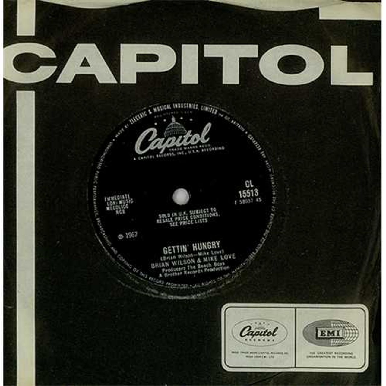 BRIAN WILSON & MIKE LOVE Gettin' Hungry (1967 UK solid centre 7" vinyl single, also including Devoted To You, issued in the Capitol company paper sleeve and remains in Excellent condition CL15513)