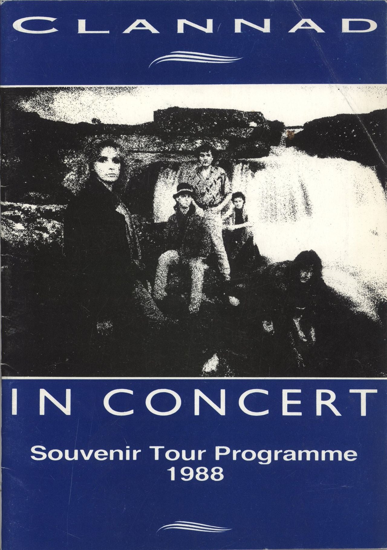 CLANNAD In Concert (1988 UK 16-page Souvenir Tour Programme, featuring monochrome photos and information about the band with tour dates and fan club/merchandise forms inside the back cover. This copy also includes two ticket stubs for the 13thMarch show at Colston Hall, Bristol
