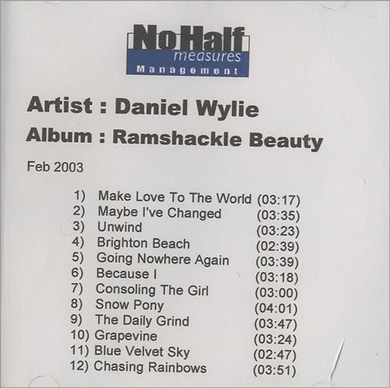 Daniel Wylie Ramshackle Beauty UK Promo CD-R acetate
