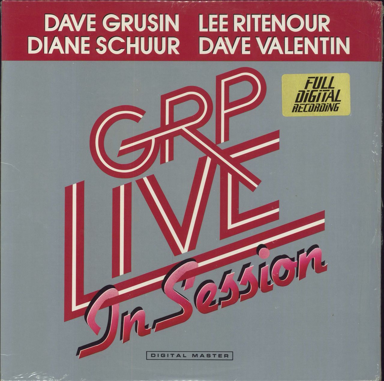 DAVE GRUSIN GRP Live In Session (1985 US 7-track digital master vinyl LP, recorded before a live audience at The Record Plant in LA, with Lee Ritenour, Dave Valentin, Diane Schuur, Abraham Williams & Carlos Vega. The picture sleeve retains itsopen shrink with 'Full Digital Recording' sticker and album credits inner. Both sleeve and vinyl are presented in Excellent condition GRPA1023)