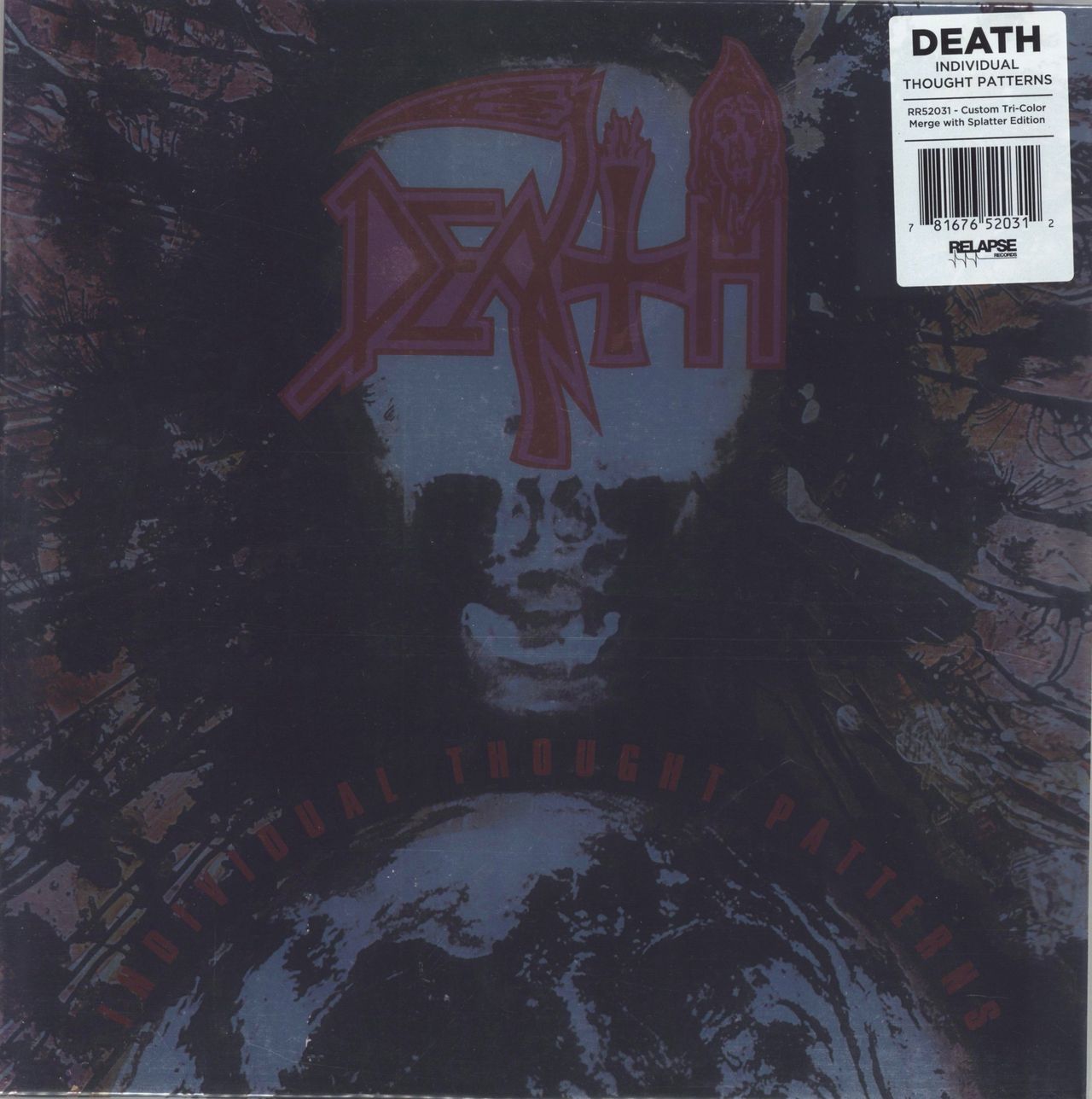 DEATH Individual Thought Patterns (2024 US/EU 10-track LP pressed on Hot Pink, Bone White And Red] With Black, Gold And Brown Splatter Vinyl - The fifth album by Chuck Schuldiner's legendary American deathmetal band including The Philosopher. Complete with credits inner, the silver foil laminated picture sleeve displays artwork by Edward Repka and shows some minimal shelfwear and the vinyl remains Near Mint RR7324)