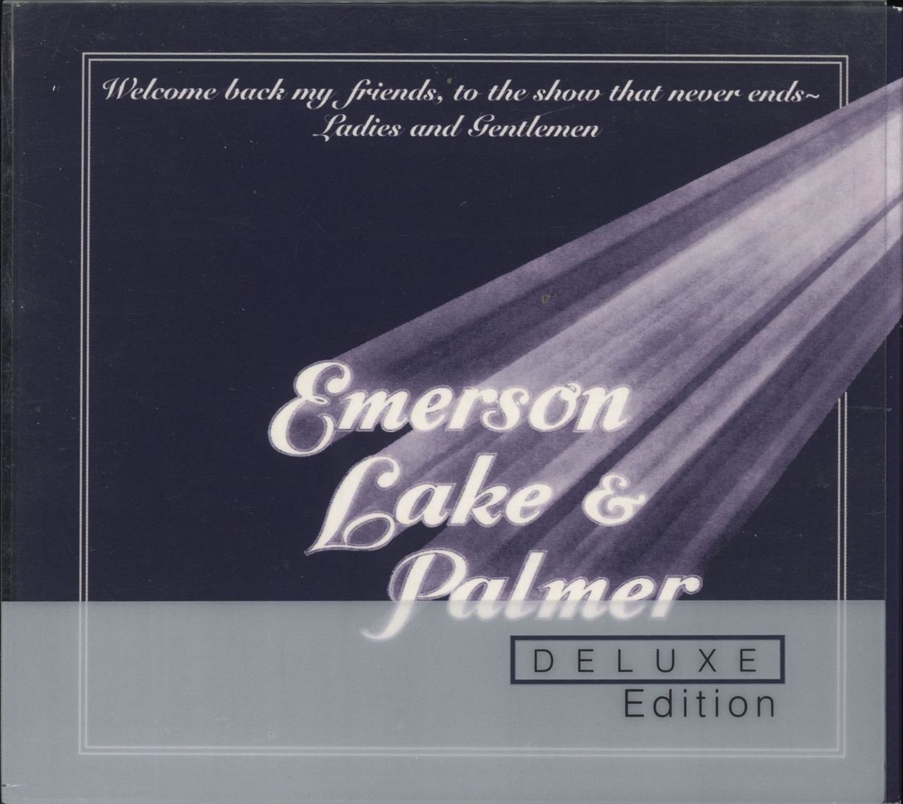 EMERSON LAKE & PALMER Welcome Back My Friends, To The Show That Never Ends (2008 UK Deluxe Edition 9-track remastered 2-CD issue of the 1974 triple vinyl LP, this mind-blowing live album was recorded during their 'Someone Get Me a Ladder' World Tour. Housed in a fold-out digipak picture sleeve with 12-page booklet with extensive sleeve notes and previously unseen photographs plus 'Deluxe Edition' clear PVC outer slipcase)