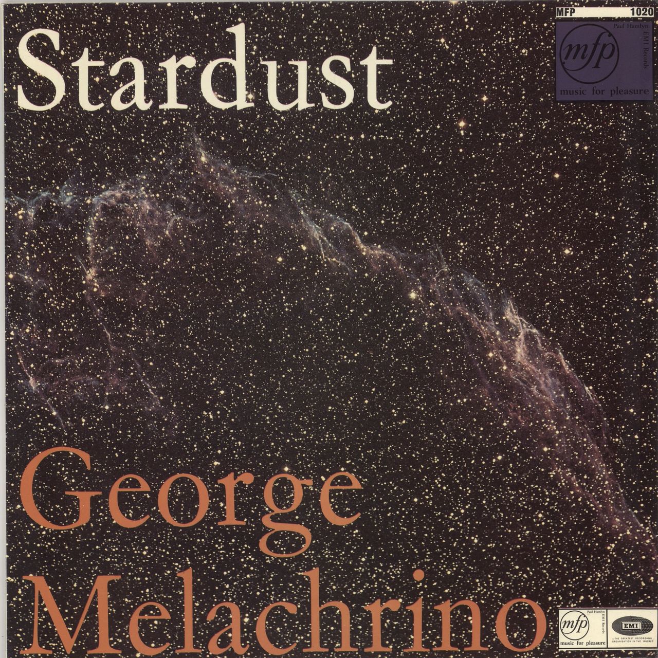 GEORGE MELACHRINO conducts THE MELACHRINO STRINGS Stardust (1960s UK 12-track vinyl LP, includes Indian Summer, Park Avenue Waltz, La Vie En Rose and others, front laminated flipback picture sleeve MFP1020)
