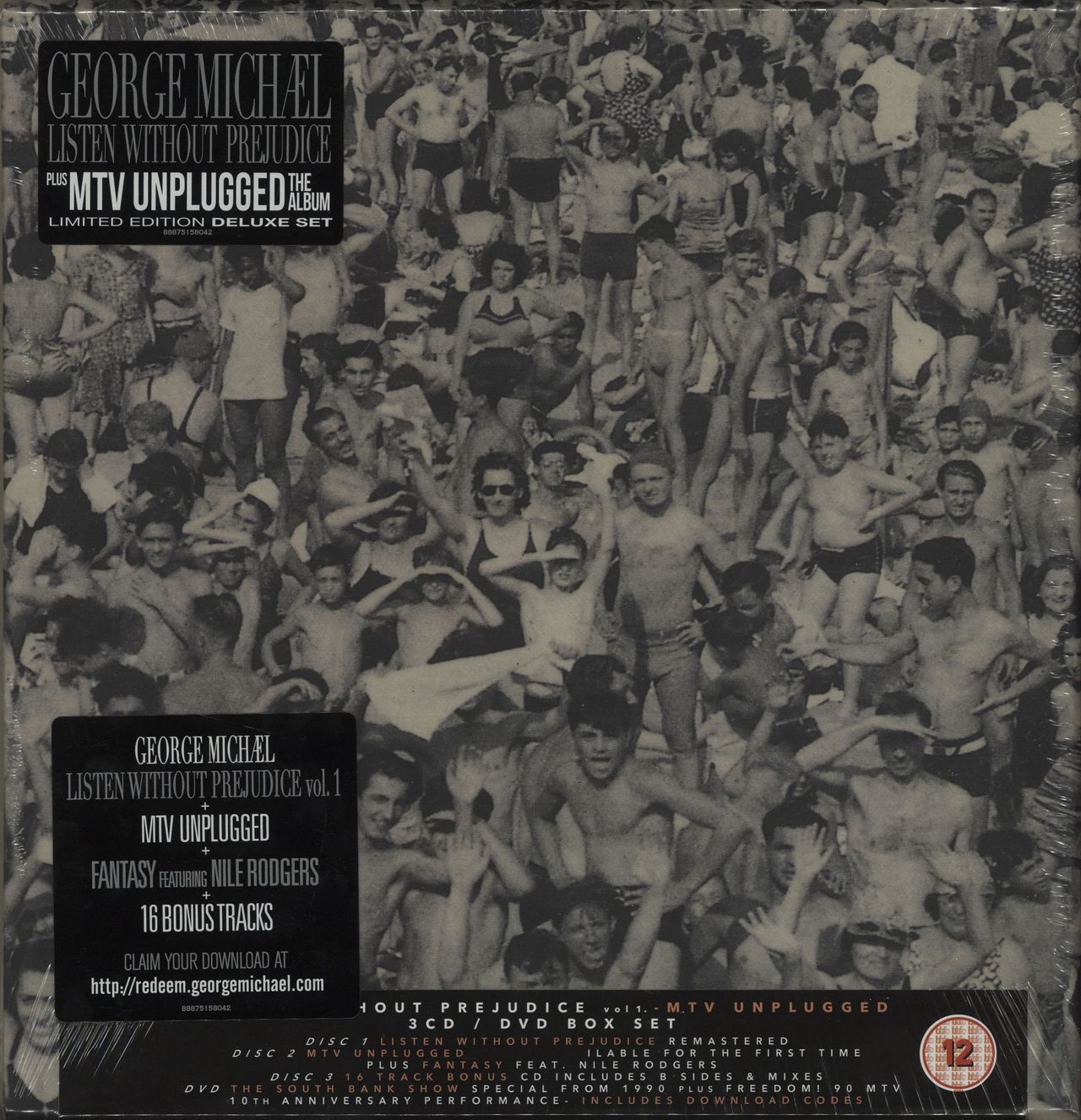 GEORGE MICHAEL Listen Without Prejudice + MTV Unplugged (Sealed 2017 UK Limited Deluxe Edition 4-disc [3-CD/1-DVD] box set comprising the 'Listen Without Prejudice Vol. 1' remastered 10-track CD, 'MTV Unplugged' 10-track CD accompanied by sixteen bonus recordings plus the 4-track DVD containing The South Bank Show 1990, videos for Freedom! '90 & Praying For Time plus the Freedom! '90 MTV 10th Anniversary performance. Complete with a download voucher, all four discs are UNPLAYED, housed in a 8½" x 8½" sealed & double stickered picture slipcase)