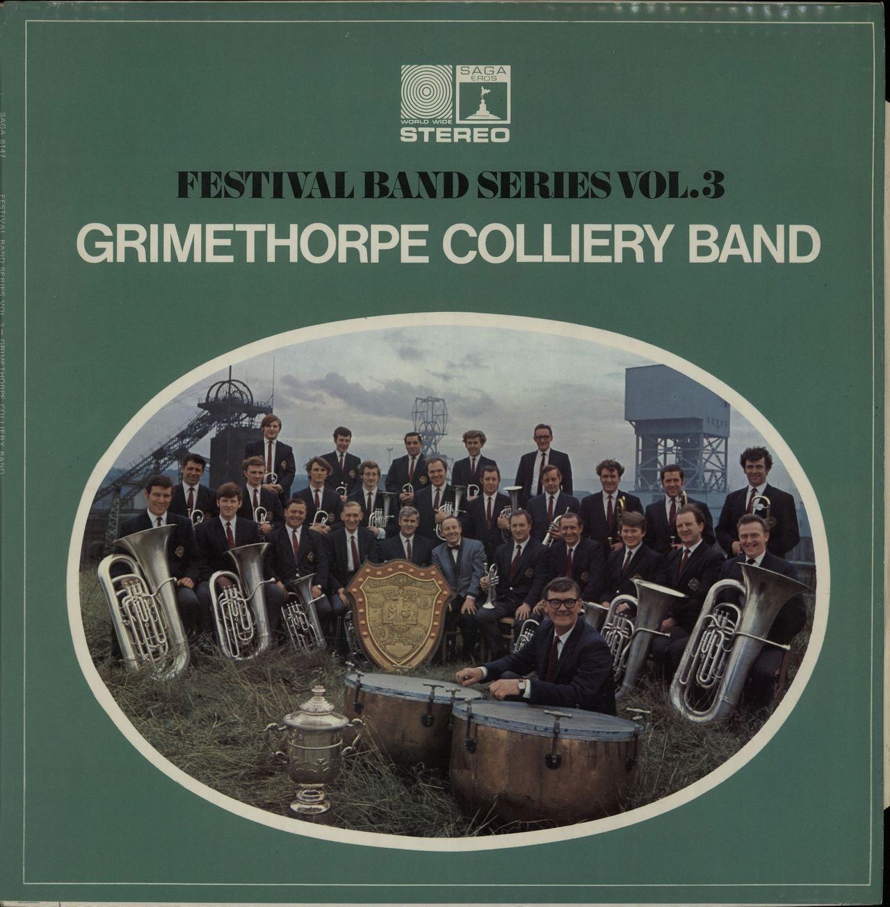 GRIMETHORPE COLLIERY BAND conducted by GEORGE THOMPSON Festival Band Series Vol. 3 (1974 UK 8-track stereo LP by the acclaimed Brass Band who were winners of the British Open Championships in 1969 & can even be heard on a Roy Harper LP, frontlaminated picture sleeve. The sleeve shows just a little light shelfwear & the vinyl remains in Excellent condition with few signs of play SAGA8147)