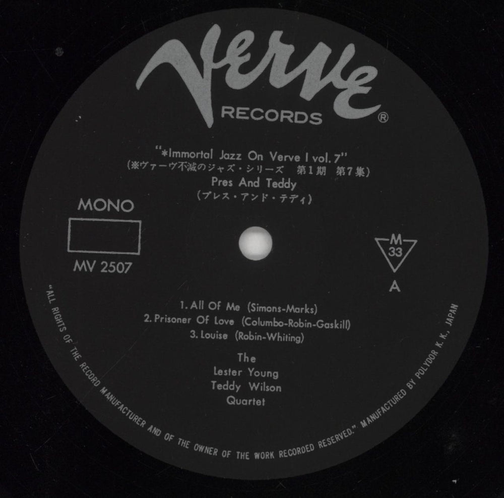 Lester Young Pres And Teddy Japanese Vinyl LP