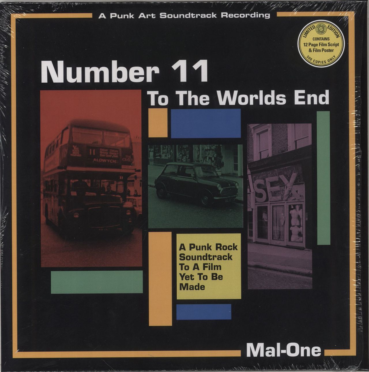 MAL-ONE Number 11 To The Worlds End - An Original Punk Rock Soundtrack Recording - RSD 2025 (2025 UK limited edition vinyl LP from the Punk Rock Art Terrorist. 12 tracks, some old, some new and interspersed with short dialogue snippets, this is the artists 'Punk Quadrophenia' soundtrack (for the as yet unmade film), relating the tale of a young lad growing up in London at that time. Limited edition of 500 copies only complete with 12-page film script & colour poster - all shrink sealed from new MAL-ONELP-005)