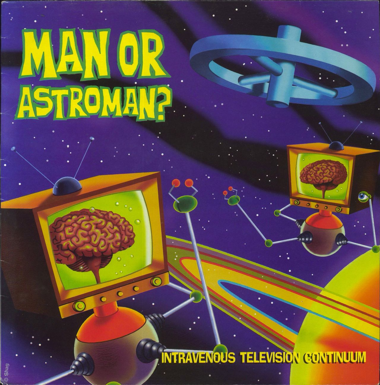 MAN OR ASTROMAN Intravenous Television Continuum (1995 UK limited edition 17-track LP pressed on Purple Vinyl, housed in a glossy picture sleeve. The sleeve displays just a little light general wear and some edge scuffing, and the vinyl has minimal signs of play. A nice example and the first copy we have ever seen)