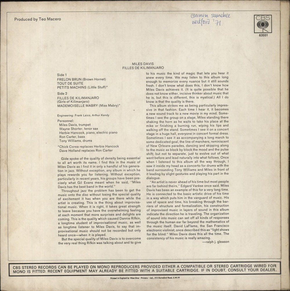 Title - Filles De Kilimanjaro (click link for more of the same title)