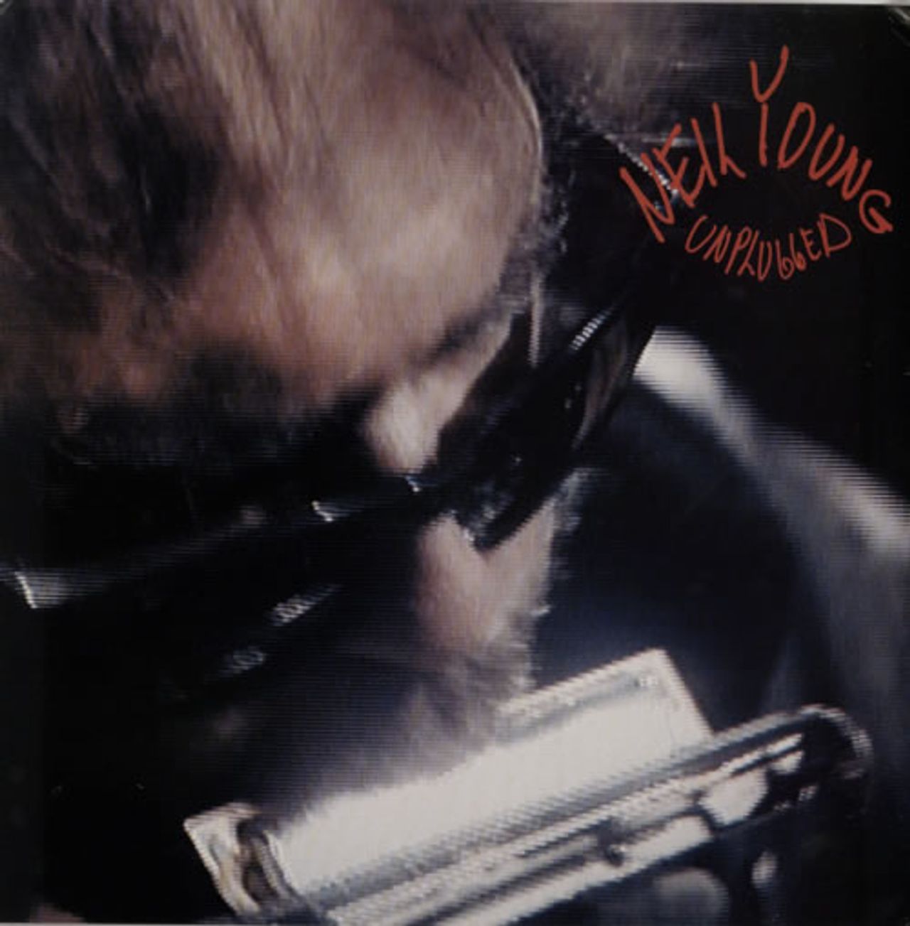 NEIL YOUNG Unplugged (Original 1993 Reprise US promotional only double sided display flat. Ever harder to track down, these original flats were stapled to record store walls, one side usually depicting the album/single artwork, the reverse with the track details as is the case with this one. Unused, free of staple holes or sellotape and overall excellent with just a small crease to the corner - all it needs is a frame to do it justice)