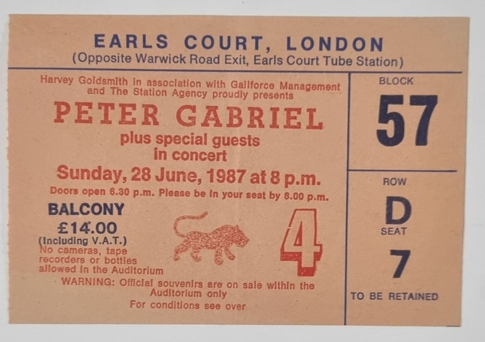 Peter Gabriel So + Ticket Stub UK Tour programme
