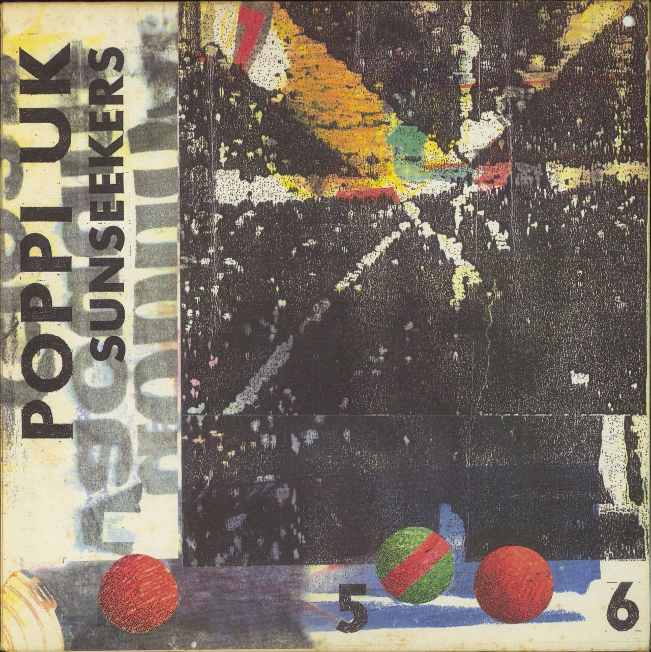 POPPI UK Sunseekers (1991 Dutch 12-track vinyl LP, housed in a textured single pocket picture sleeve with deletion punch hole and press sheet included. The delicate sleeve shows some mild wear with age and the vinyl appears excellent with minimal signs of wear)