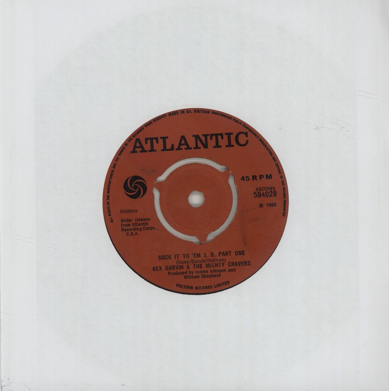 Rex Garvin & The Mighty Cravers Sock It To 'Em J.B. Part One - 3pr UK 7" vinyl