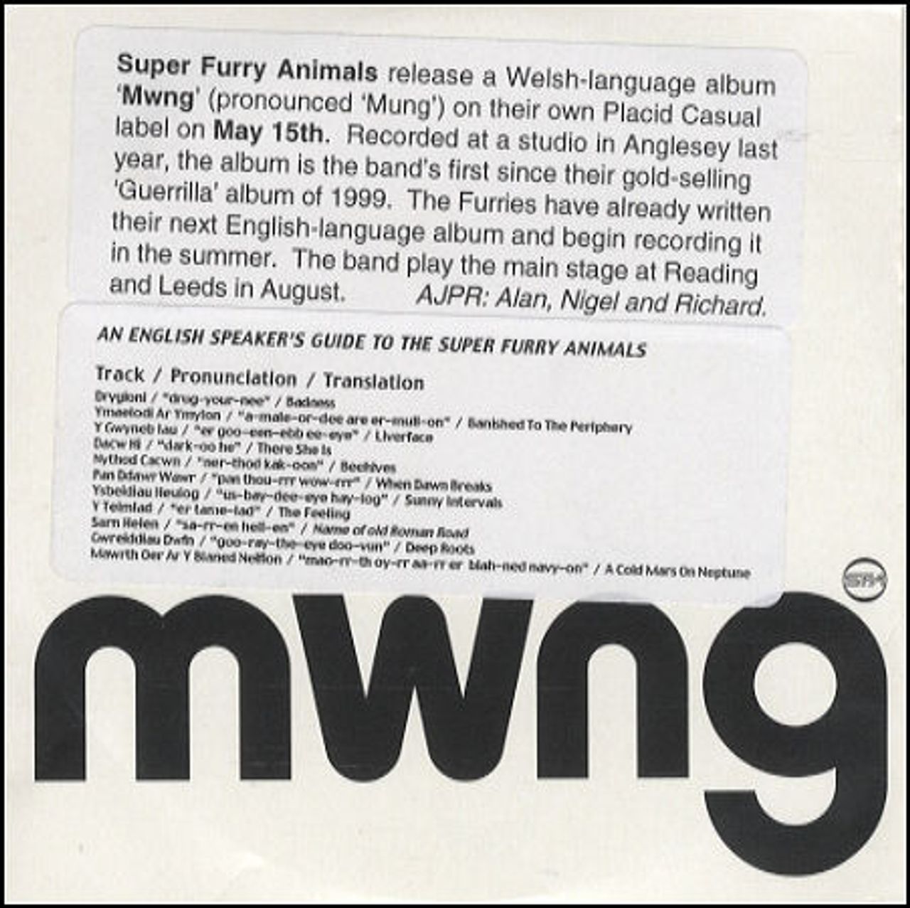 SUPER FURRY ANIMALS Mwng (Scarce 2000 UK 11-track advance promotional Welsh language CD, includes Ysbeidiau Heulog, housed in a custom card walet picture sleeve PLC03CDP)