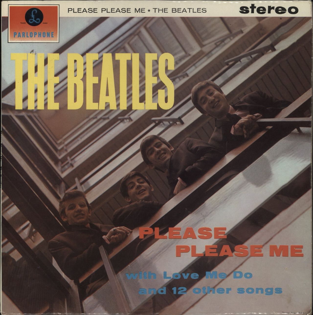 THE BEATLES Please Please Me (Rare 1963 UK stereo LP. This is the fourth stereo pressing of this spectacular debut album on the yellow and black Parlophone design which was only pressed for a short time after the small 33 & 1/3 credit had beenremoved but before the perimeter text of 'Recording First Published' was added which is absent on this label design as is the 'Sold In The UK' text. Front laminated flipback EJ Day sleeve with large STEREO logo on the front PCS3042)