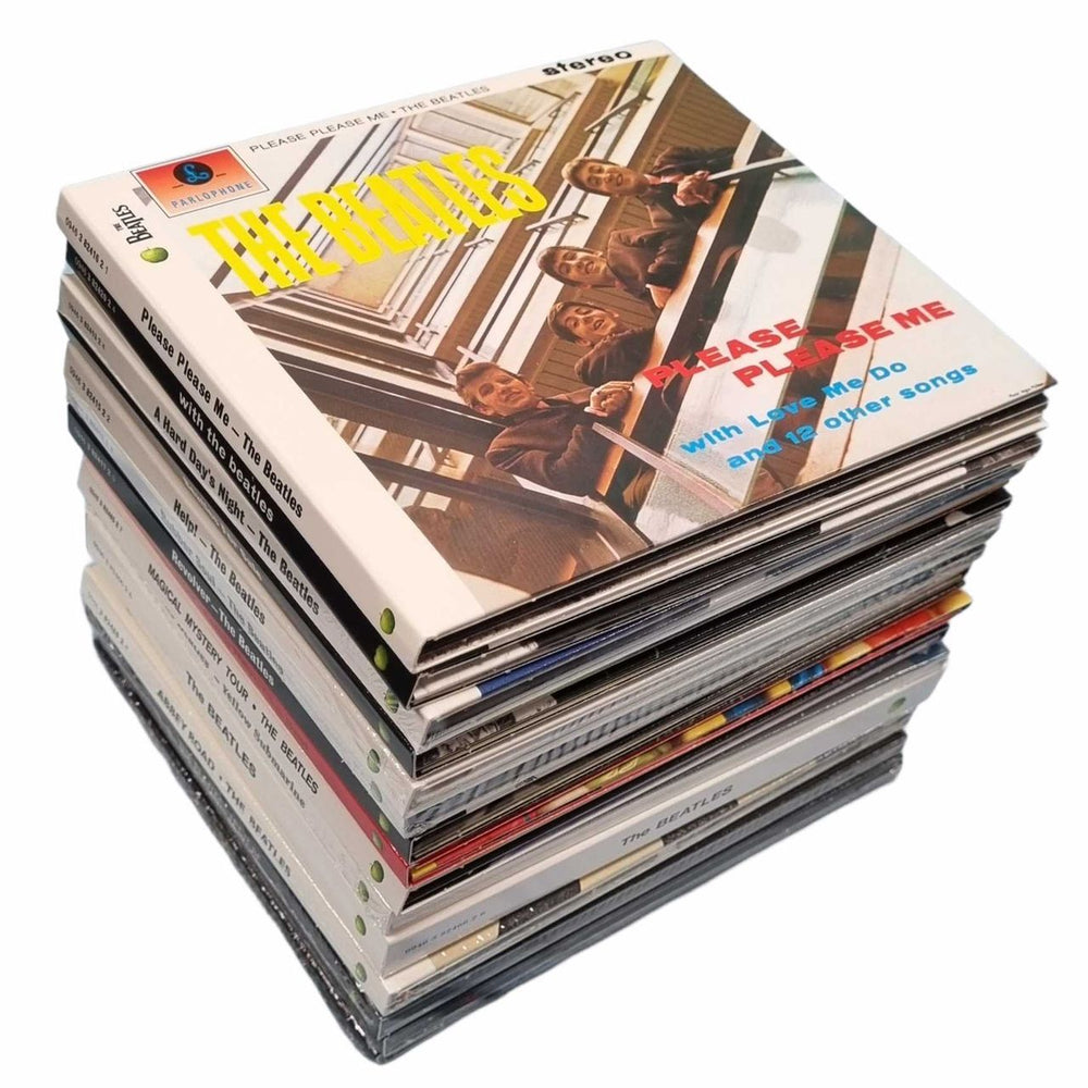 THE BEATLES The Beatles (In Stereo) (2009 UK/EU Limited Edition SEVENTEEN Disc [16 Enhanced CDs/1 All Region NTSC DVD] Box Set, containing all thirteen original albums from 'Please Please Me' to 'Let It Be' & the 'Past Masters' which has beenremastered & repackaged as a double CD. Each album comes with a bonus enhanced video for the 'Making Of' using exclusive original footage from The Beatles' own archive & other rare footage, with voice-over by the group & George Martin. These have also been collated onto a bonus NTSC DVD unique to this set. Housed in a high quality box with magnetic fastening, with each album in triple panel card package using conservation grade FSC paper with a set of historical notes for each album to accompany recording notes on the actual process of making the records at the time, complete with outer slipcase. The delicate slipcase remains in Excellent condition with a few paper marks over time. The discs remain sealed & unplayed)