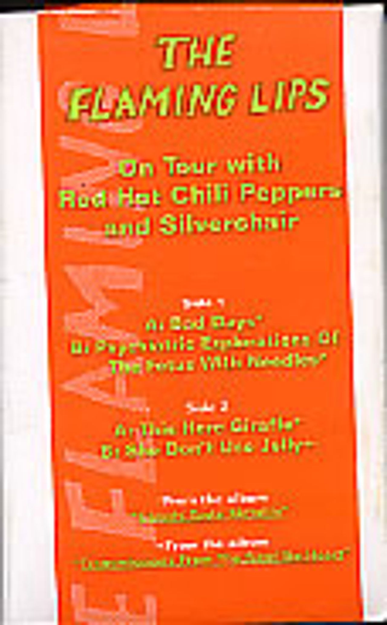 FLAMING LIPS On Tour With Red Hot Chilli Peppers & Silverchair (1995 US promo-only 4-track cassette, with custom wrap-around orange/green title sticker, sticker is still intact and still sealed! PRO-C-7938)