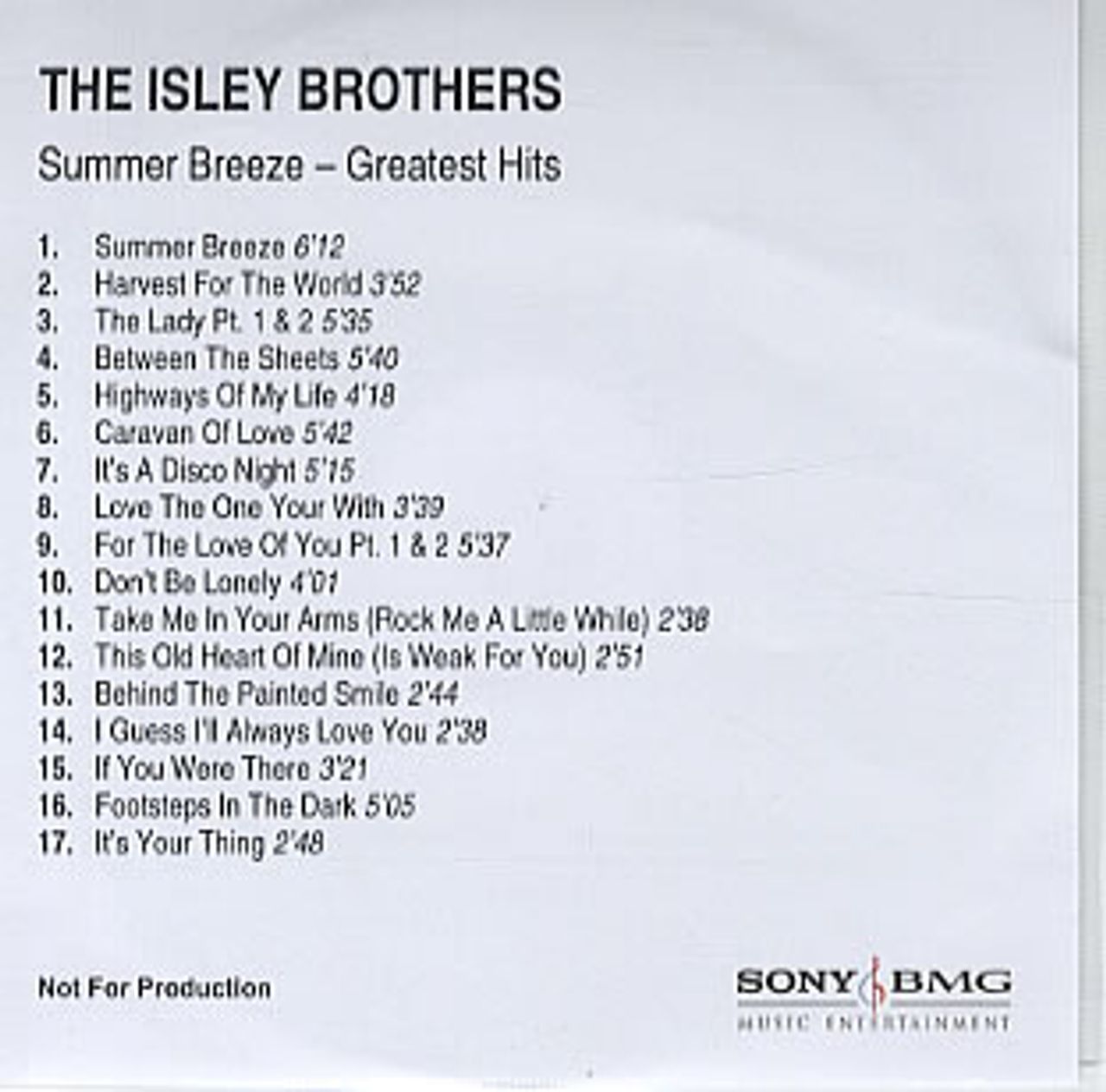 THE ISLEY BROTHERS Summer Breeze - Greatest Hits (2005 UK official Sony Music 17-track CD-R acetate album, issued exclusively to reviewers and radio stations. Includes Harvest For The World & Between The Sheets, custom printed disc plus title/tracklisting inlay)