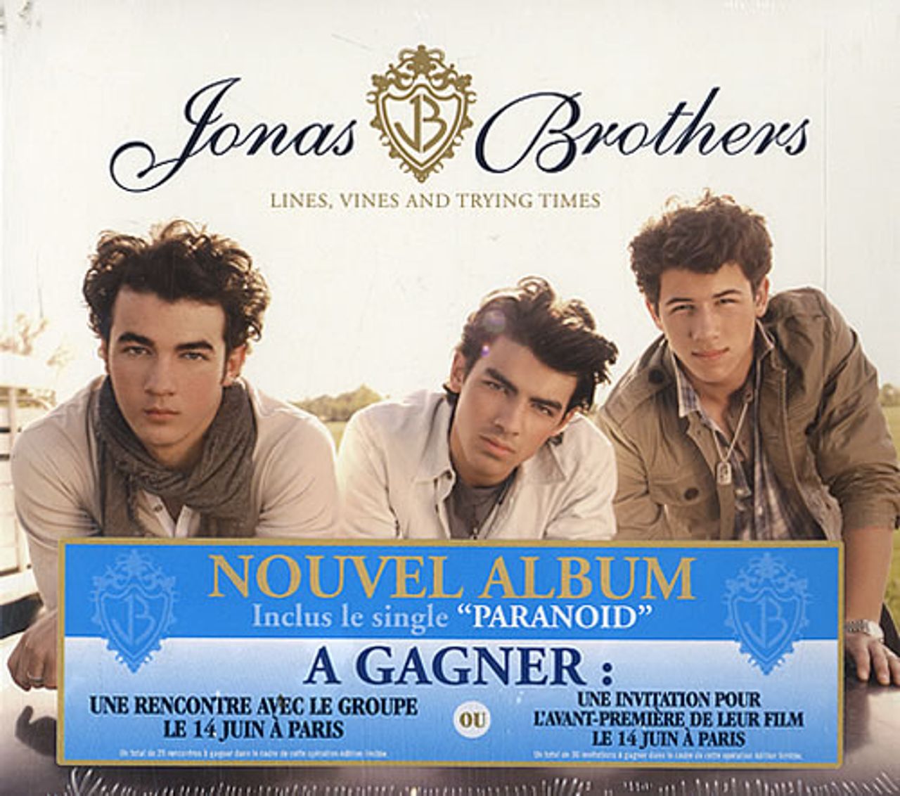 THE JONAS BROTHERS Lines, Vines And Trying Times (2009 French 'Édition Limitée' 13-track enhanced CD album, the 4th studio longplayer from the Brothers, includes the singles 'Paranoid' and 'Fly With Me', plus bonus recording 'Keep It Real' [taken from the original TV series, 'JONAS'] and enhanced section featuring 2 behind-the-scenes videos, ringtones and exclusive fan club content; presented in sealed & stickered digipak sleeve with 24-page booklet featuring lyrics and new unseen photos!)