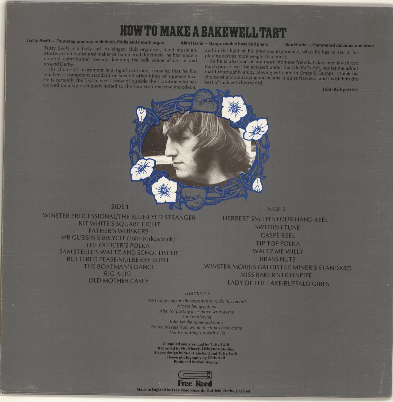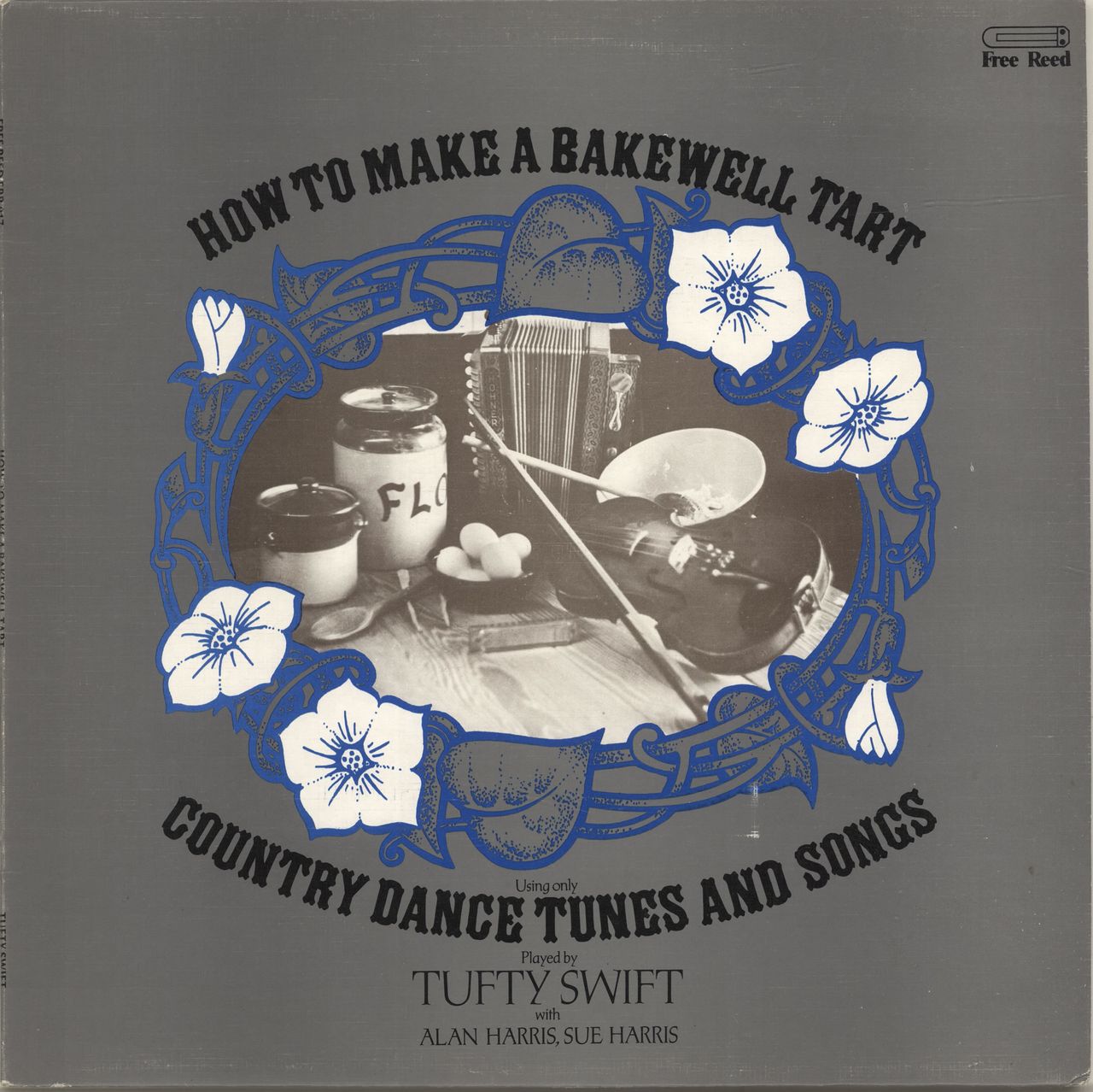 TUFTY SWIFT How To Make A Bakewell Tart (1977 UK 19-track LP of country tunes & songs played on the Four-Stop One Row Melodeon, Fiddle & Mouth Organ, also featuring Alan Harris on Banjo, Double Bass & Piano with Sue Harris [no relation] on Hammered Dulcimer & Oboe, with fold-out narrative/music insert, label catalogue inner & textured picture sleeve. The sleeve shows minimal edge wear & small sticker mark, whilst the vinyl is Excellent & looks barely played FRR017)