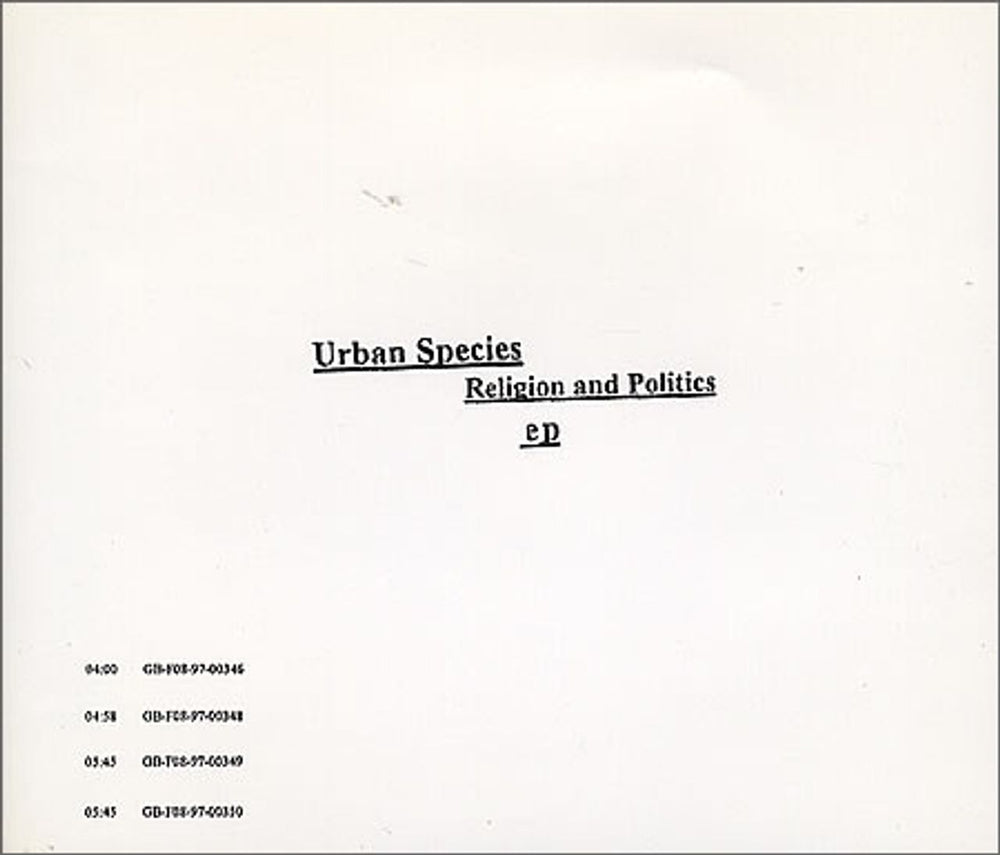 URBAN SPECIES Religion And Politics EP (1997 UK 4-track CD single,