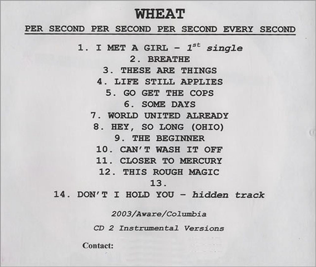 Wheat Per Second, Per Second, Per Second...Every Second US Promo CD-R acetate